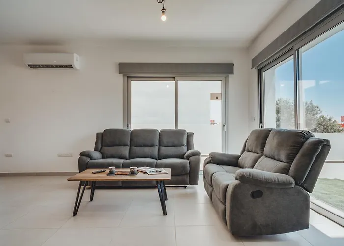 Larnaca International airport can be reached within 48 minutes drive, and natural attractions like Sculpture Park are 3.6 km away. Cultural landmarks in the vicinity include Thalassa, which is situated 2.1 km away. Modern 3 Bedroom Villa Near Nissi Beach! is 25 minutes on foot from family-friendly places such as Parko Paliatso.